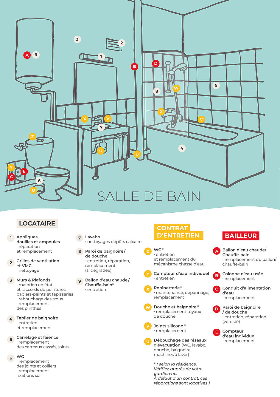 Dans le livret "Qui fait quoi ?", vous pouvez retrouver les détails de l'entretien courant de votre logement, pièce par pièce, pour vous guider au mieux.