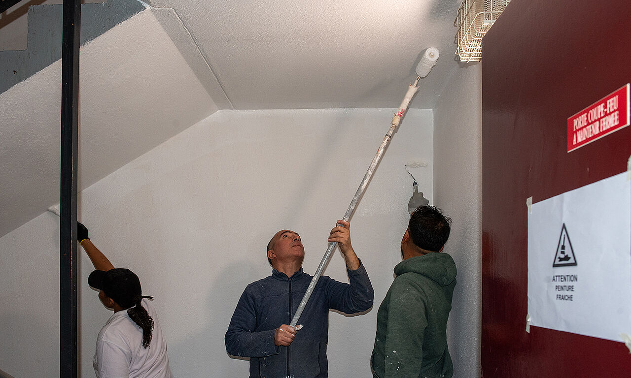 Au Petit-Nanterre, à Berthelot et à Zilina, plusieurs chantiers d’insertion ont eu lieu, en partenariat avec la Régie de quartiers de Nanterre. Peinture, cage d’escaliers, plafonds et sols, de nombreux travaux d’embellissement sont engagés dans les résidences concernées.