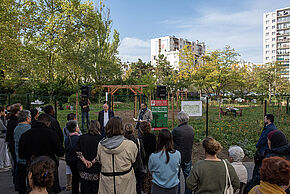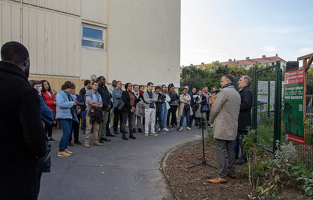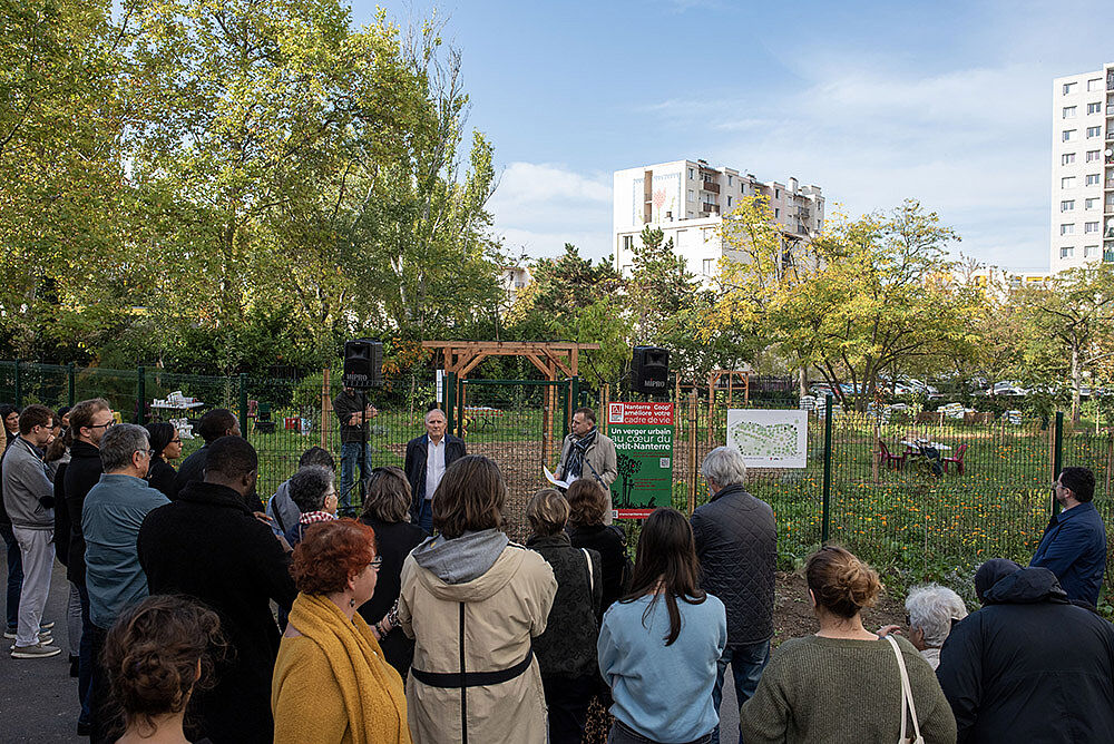 Plusieurs dizaines d'habitant.es étaient aussi présent.es à ce rendez-vous, mettant en lumière un beau projet durable et participatif au coeur du quartier du Petit-Nanterre. C'est désormais un verger fruitier, renforçant la biodiversité, qui se trouve dans la résidence des Glycines, en lieu et place d'un espace à l'abandon. En présence du maire de Nanterre, des partenaires Vergers Urbains et Le GAO, acteurs moteurs du projet, les échanges et animations se sont tenus durant otut l'après-midi.