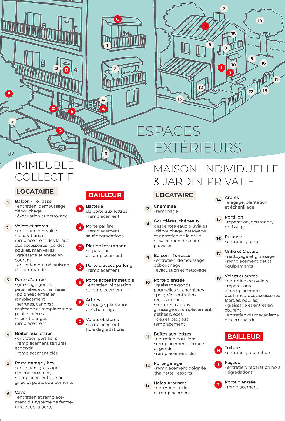 La loi encadre et définit précisément cette répartition (loi n° 89-462 du 06/07/1989 et décret n° 87-712 du 26/08/1987). Par les accords collectifs conclus, ce sont des dispositions plus avantageuses pour les résident.es qui sont en vigueur pour les réparations locatives.
