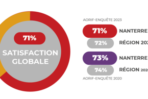 L’information qui vous est transmise vous satisfait de manière notable (86% en 2023, 68% en 2020), et une amélioration de votre satisfaction est constatée pour adresser vos demandes à la Coop’ (64% en 2023, 61% en 2020). La satisfaction quant au traitement des ordures ménagères progresse aussi (74% en 2023, 71% en 2020). Enfin, si votre appréciation sur la qualité de vie dans le quartier évolue positivement (63% en 2023, 61% en 2020), les incivilités constituent un élément plus marquant à Nanterre que sur le reste de la région parisienne.